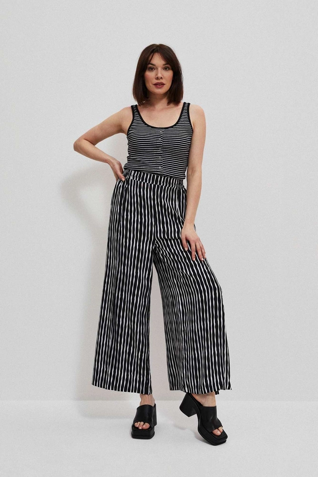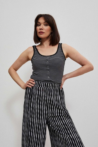95% COTTON 5% ELASTANE Blouse, top, black, white, stripes, Cotton, Classic, sleeveless, Round neck, buttons, Model in the picture: height: - 176cm, dimensions 86/68/92, Moodo size - top-S, bottom-S
