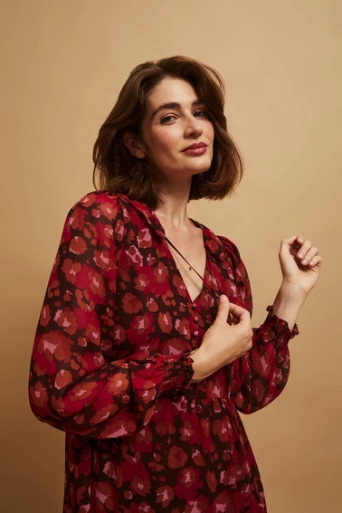 Dekolt: | w serek ( V neck), wiązany |