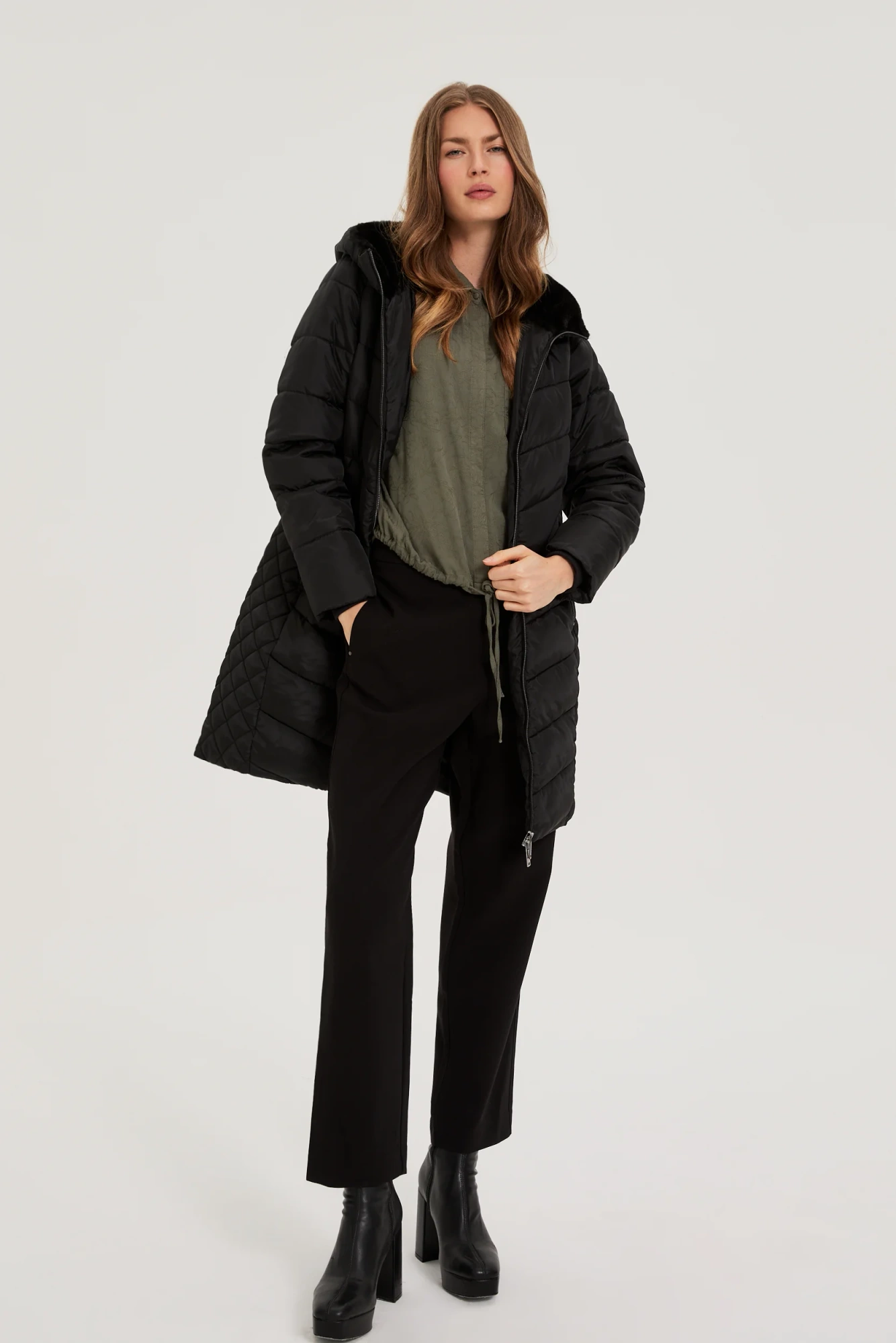 - Długość boczna - mierzymy wzdłuż bioder, od talii, do stóp.