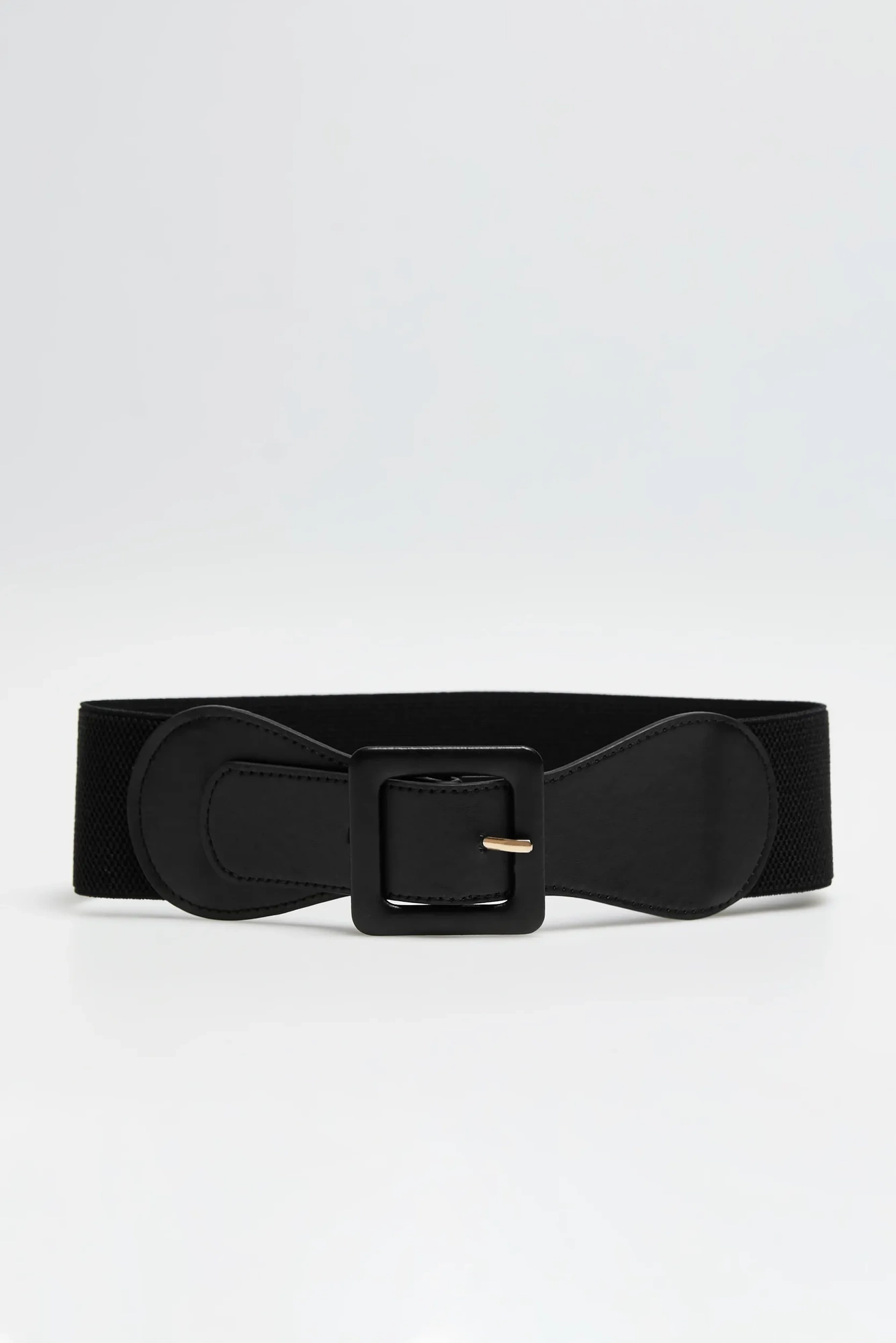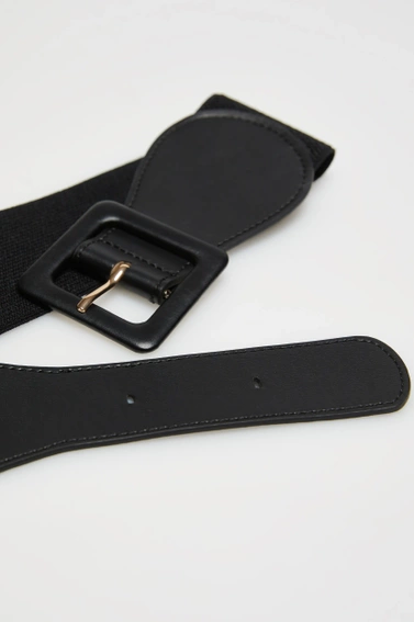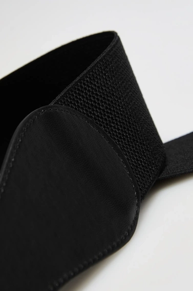 Elegancki pasek w kolorze czarnym, bez wzoru, wykonany z wysokiej jakości poliestru. Idealny dodatek do każdej stylizacji.