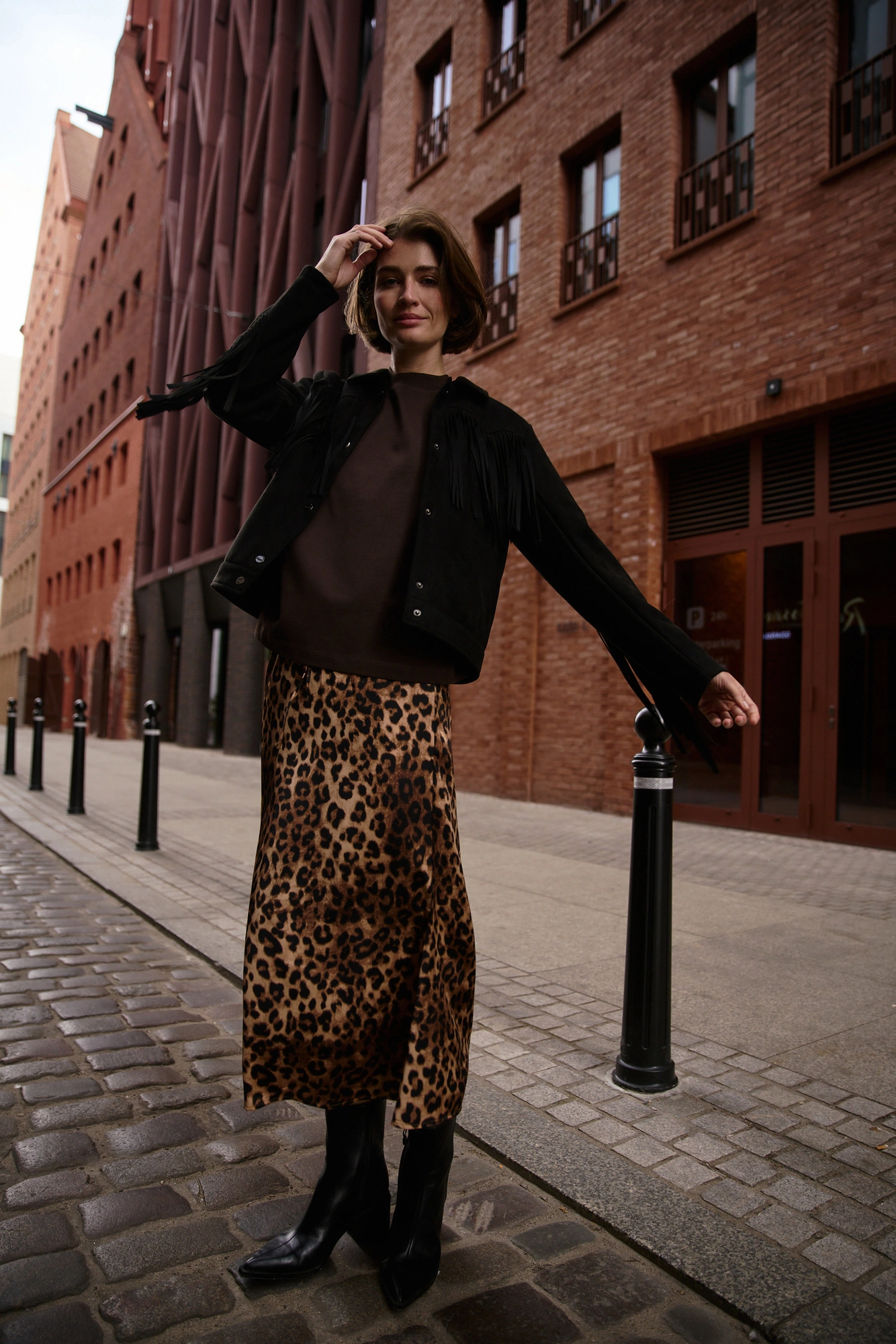 - Długość boczna - mierzymy wzdłuż bioder, od talii, do stóp.