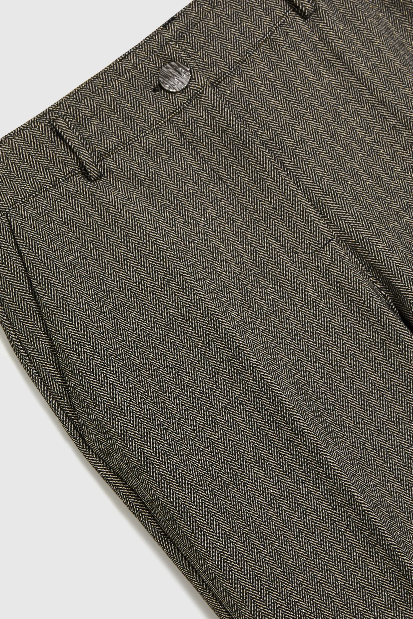 Eleganckie spodnie cygaretki w kolorze beżowym, wykonane z wysokiej jakości poliestru, zachwycają modnym wzorem w jodełkę. Długa nogawka w kant oraz średni stan podkreślają klasyczny charakter produktu. Praktyczne kieszenie, zapięcie na zamek i guziki zapewniają wygodę użytkowania na co dzień i podczas wyjątkowych okazji.